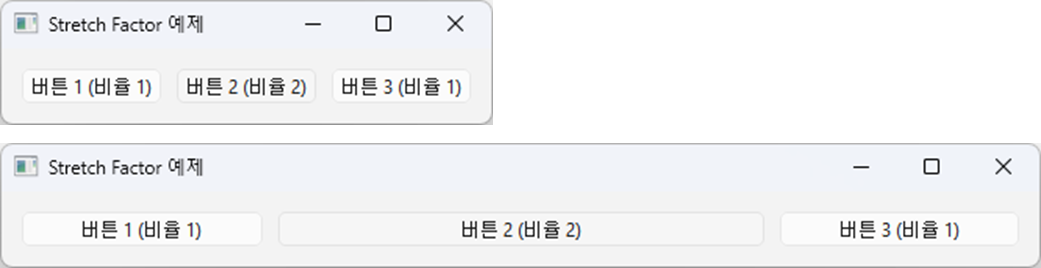 btn1 = QPushButton("버튼 1 (비율 1)")