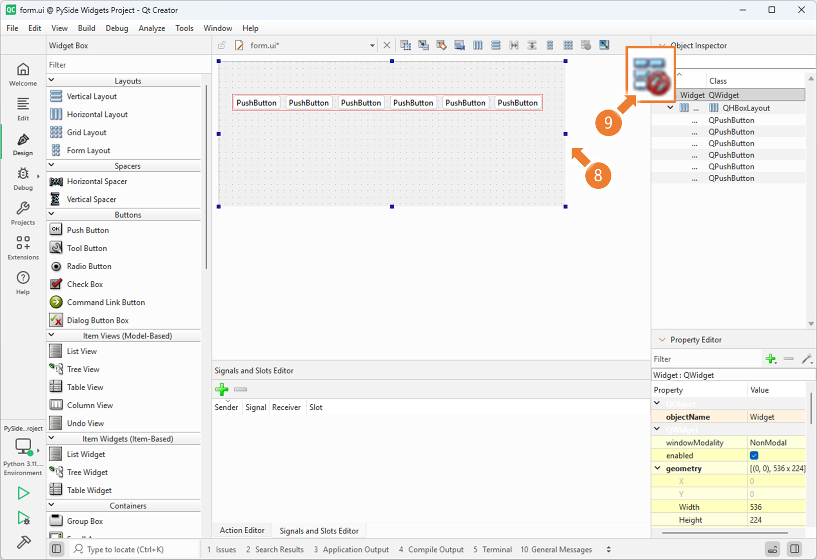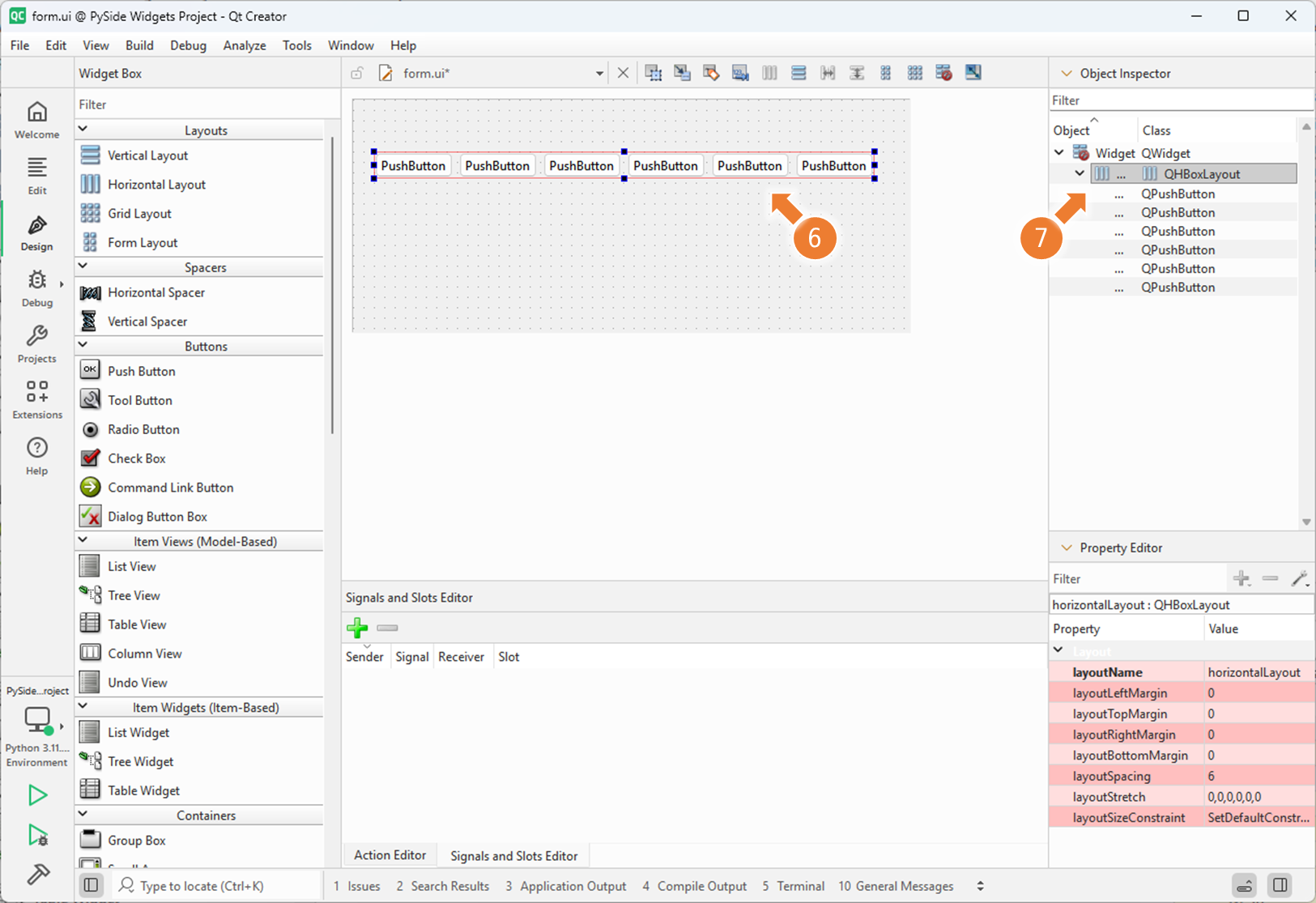 3. Qt Designer 에서 QHBoxLayout 사용하기 (2)