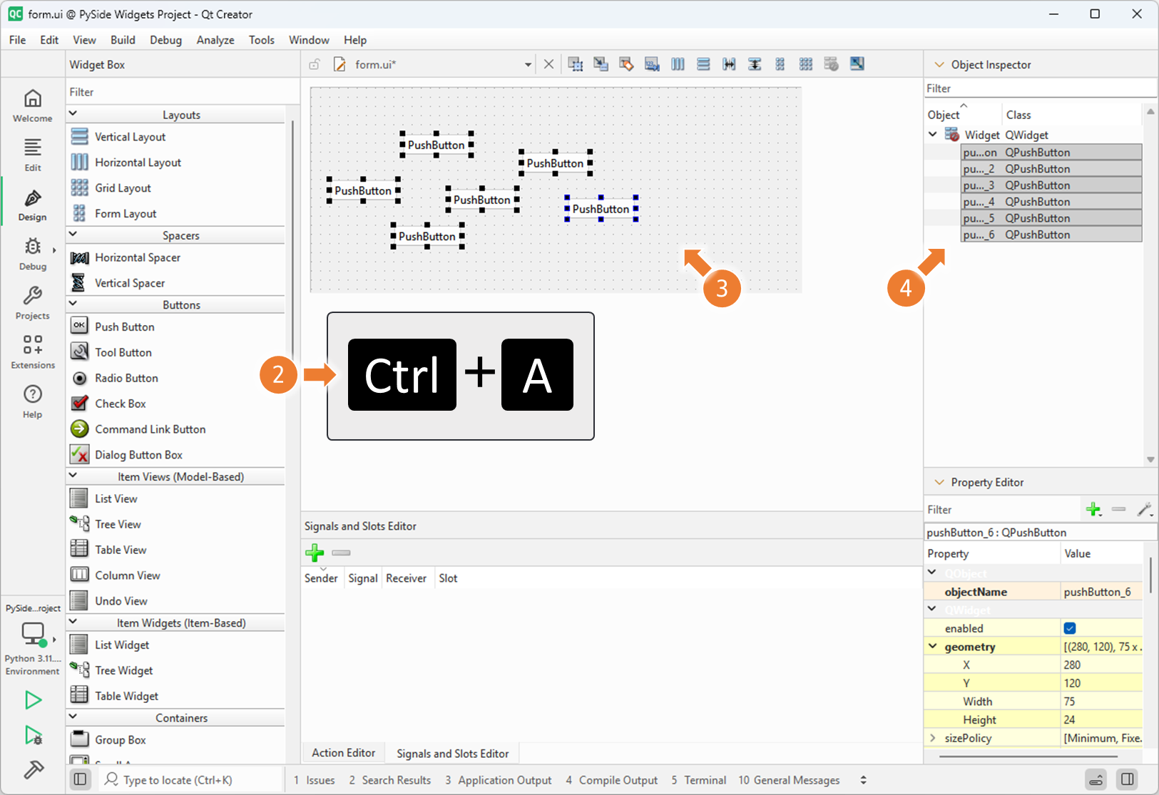 2. Qt Designer 에서 QHBoxLayout 사용하기 (1)