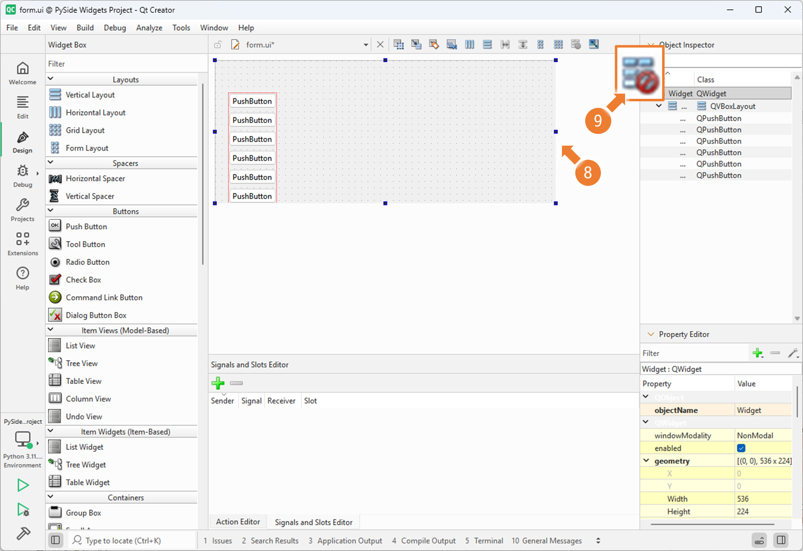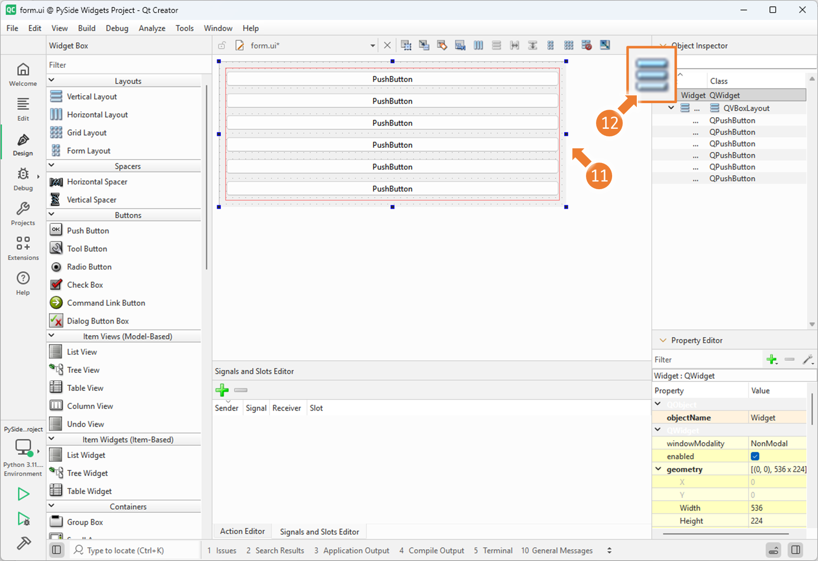 3. Qt Designer 에서 QHBoxLayout 사용하기 (2)