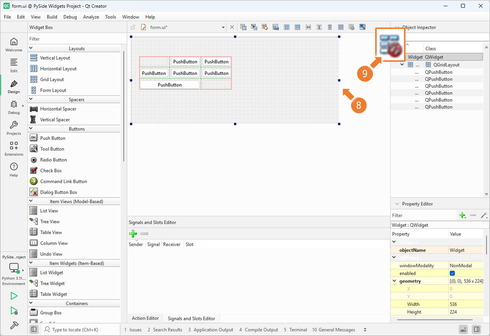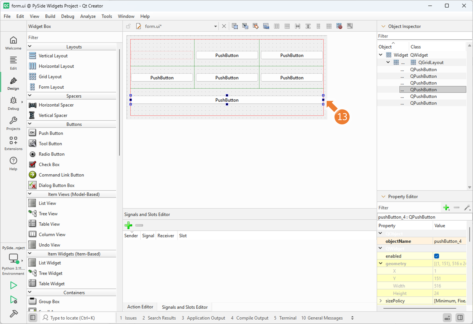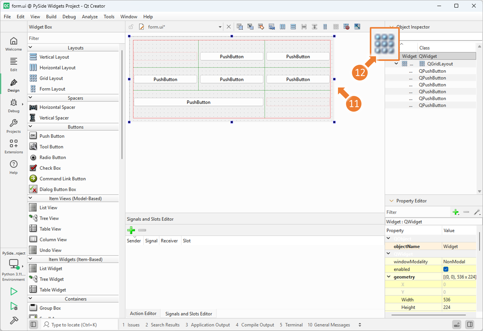 3. Qt Designer 에서 QGridLayout 사용하기 (2)