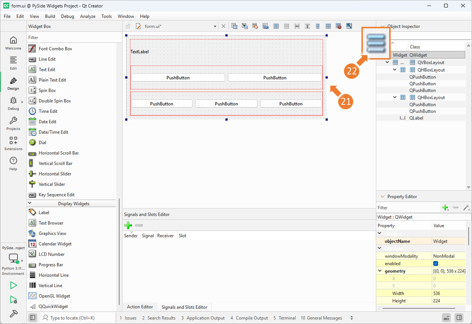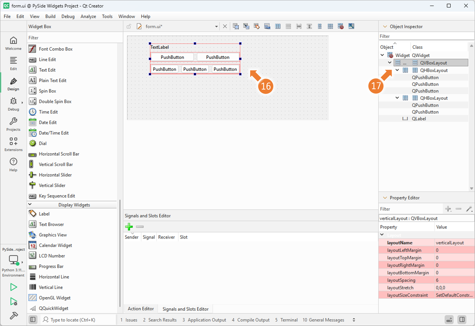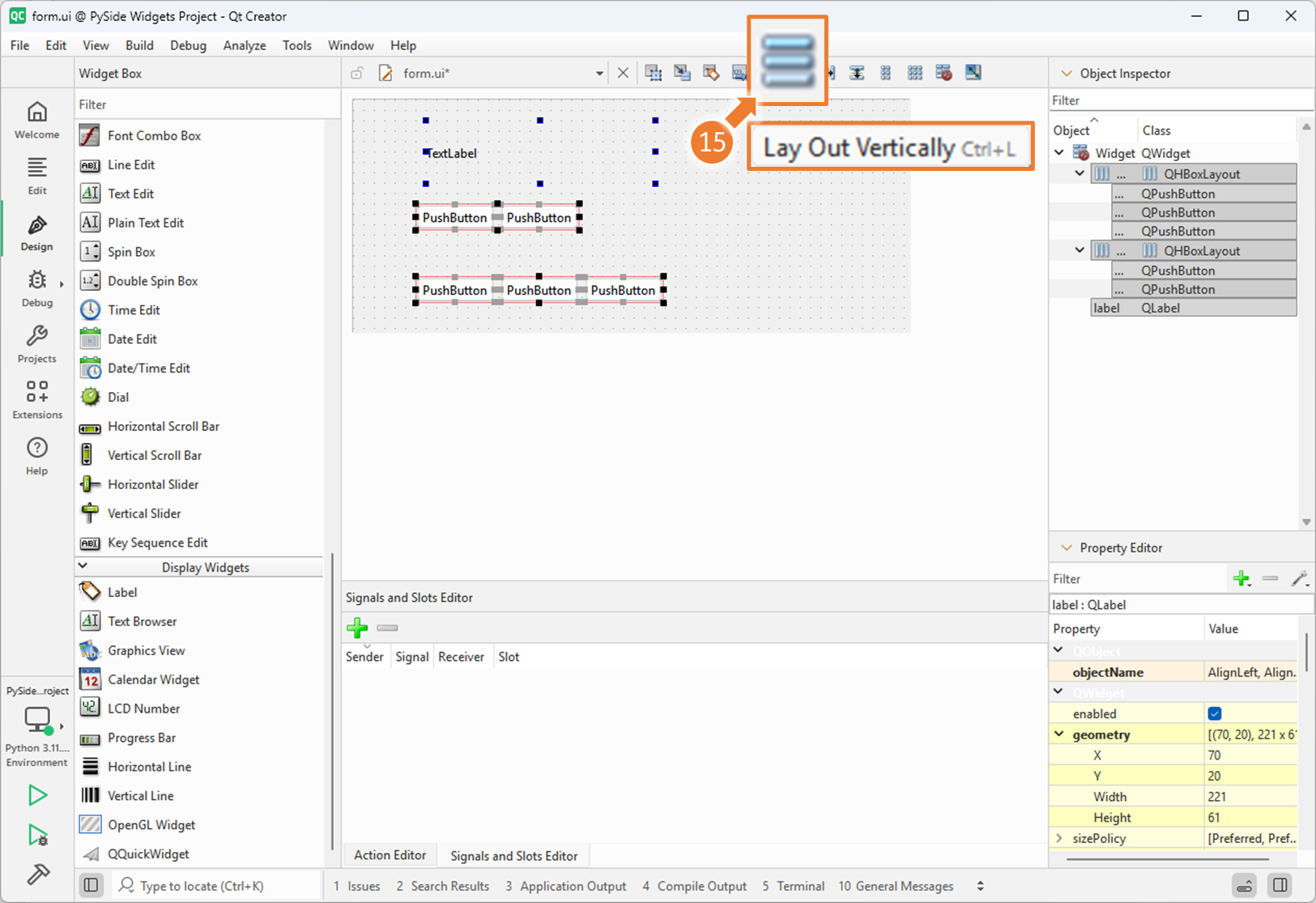 3. Qt Designer 에서 Nesting Layouts 사용하기 (2)
