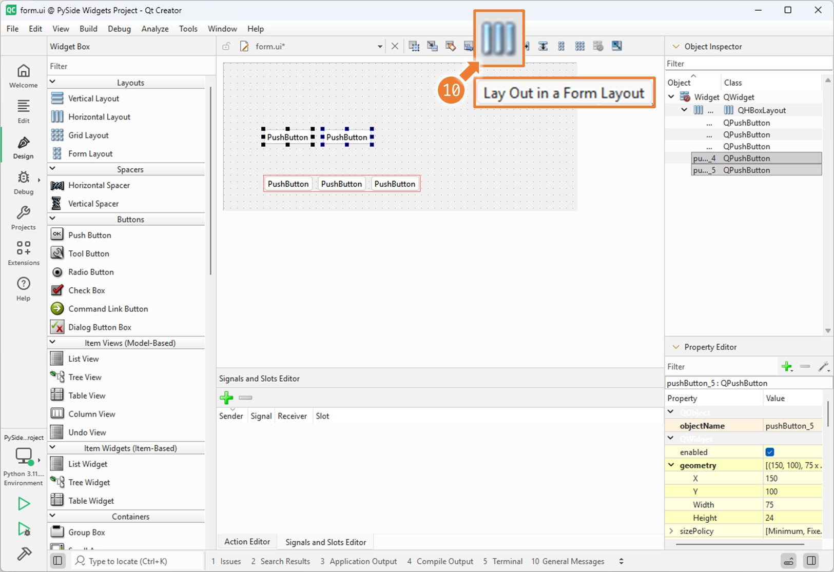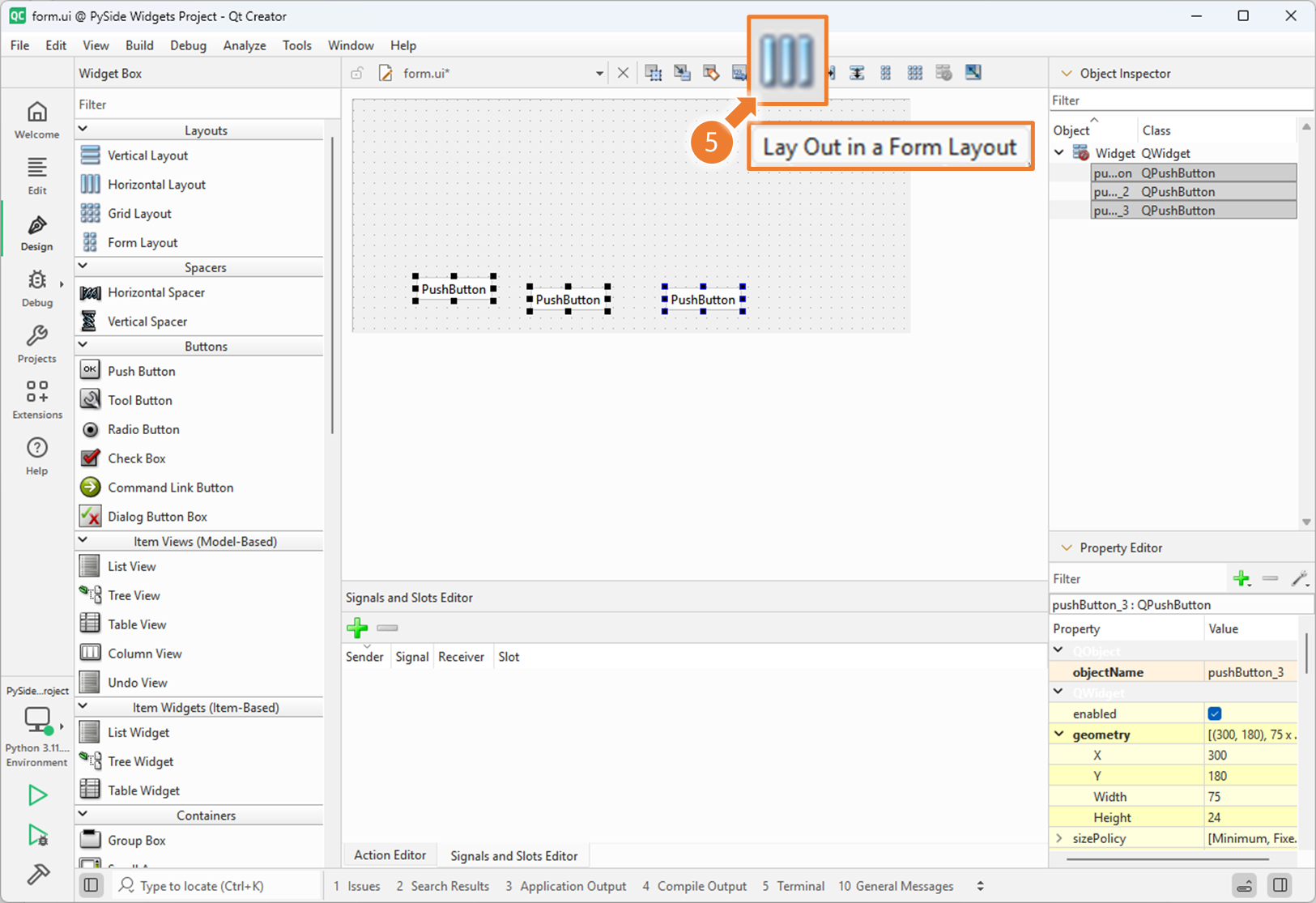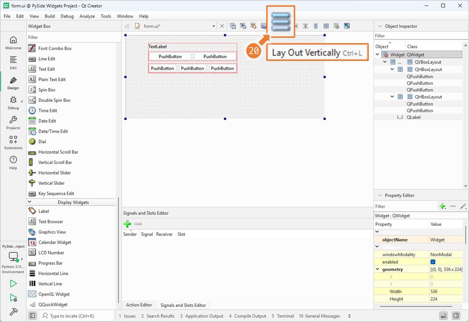 3. Qt Designer 에서 Nesting Layouts 사용하기 (2)