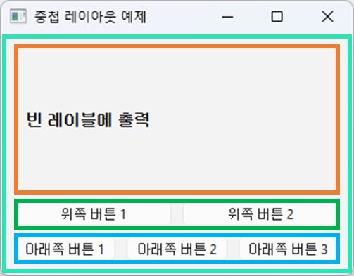 bottom_layout.addWidget(QPushButton("아래쪽 버튼 3"))