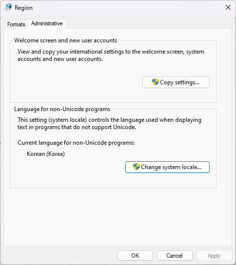 *참고로, 한컴 문서를 사용하는 사람은, 시스템 로케일을 수정하면 안됨. 복붙시 한글 깨짐 발생함