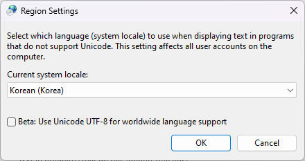 *참고로, 한컴 문서 프로그램을 사용하는 사람은, 시스템 로케일을 수정하면 안됨. 복붙시 한글 깨짐 발생함