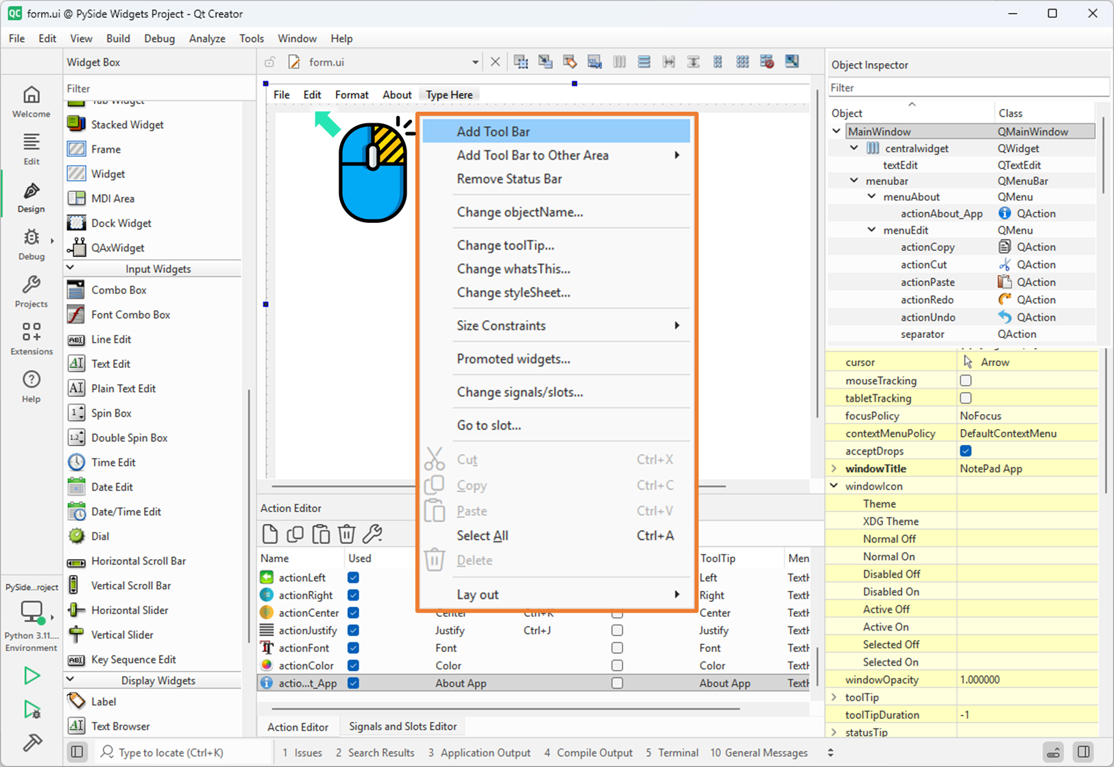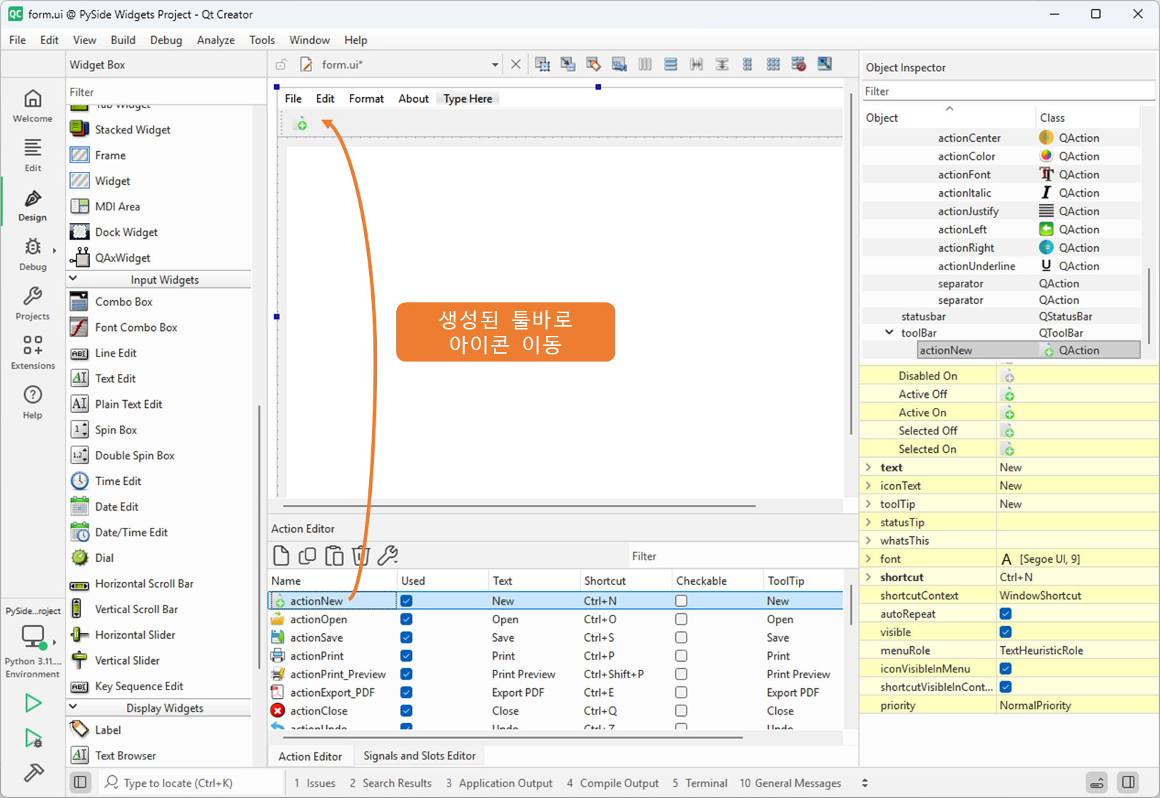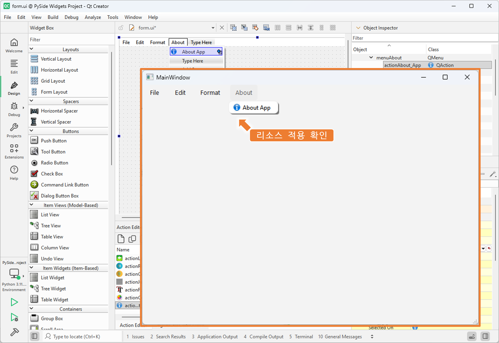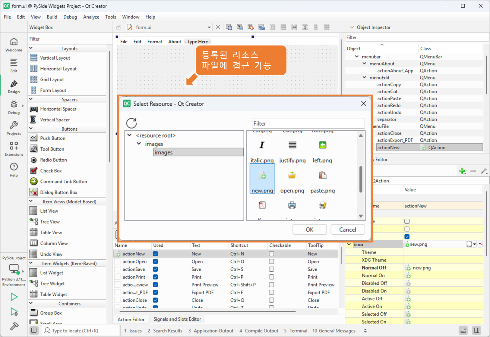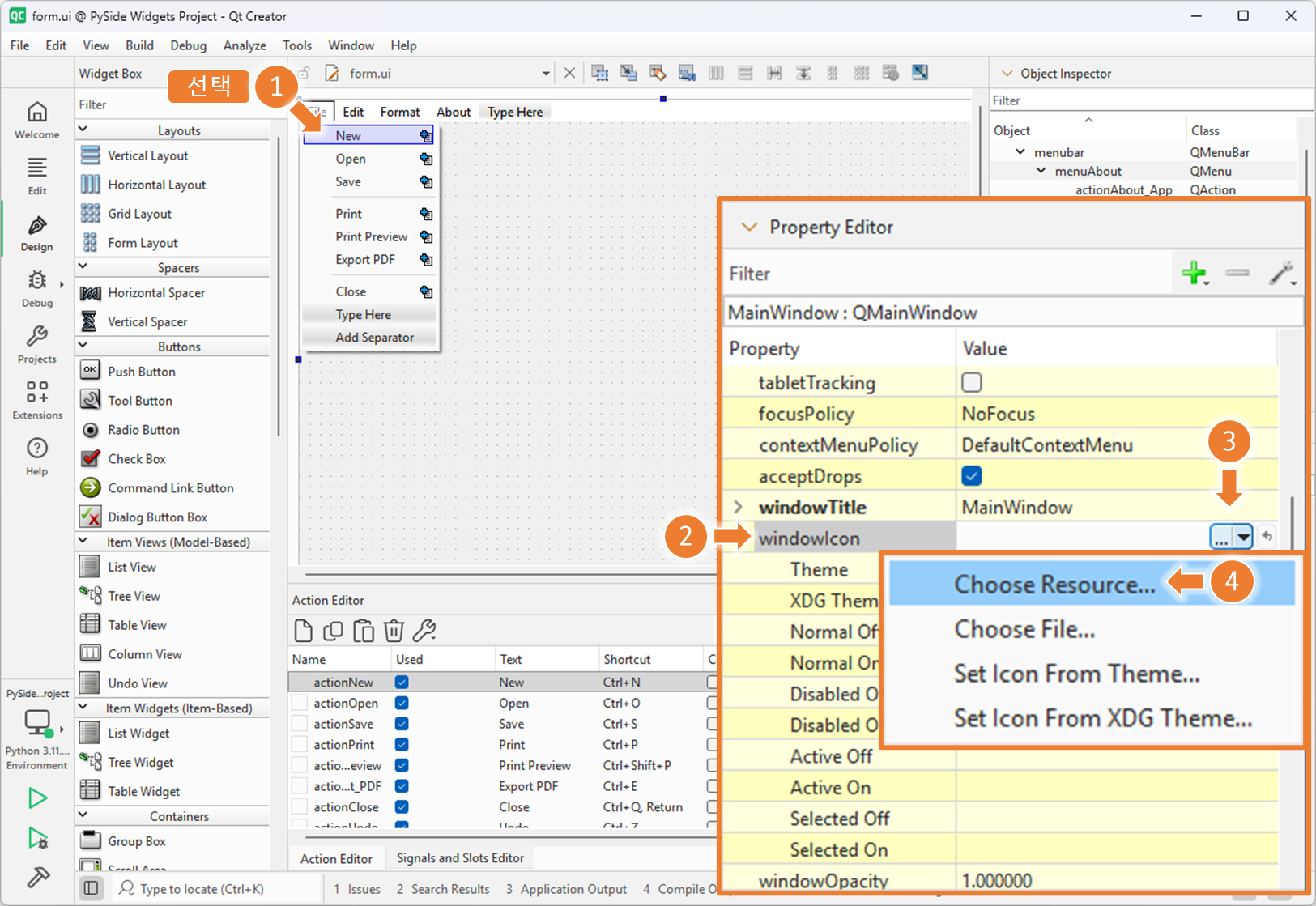 Qt 디자이너에서 아이콘 리소스 설정하는 방법