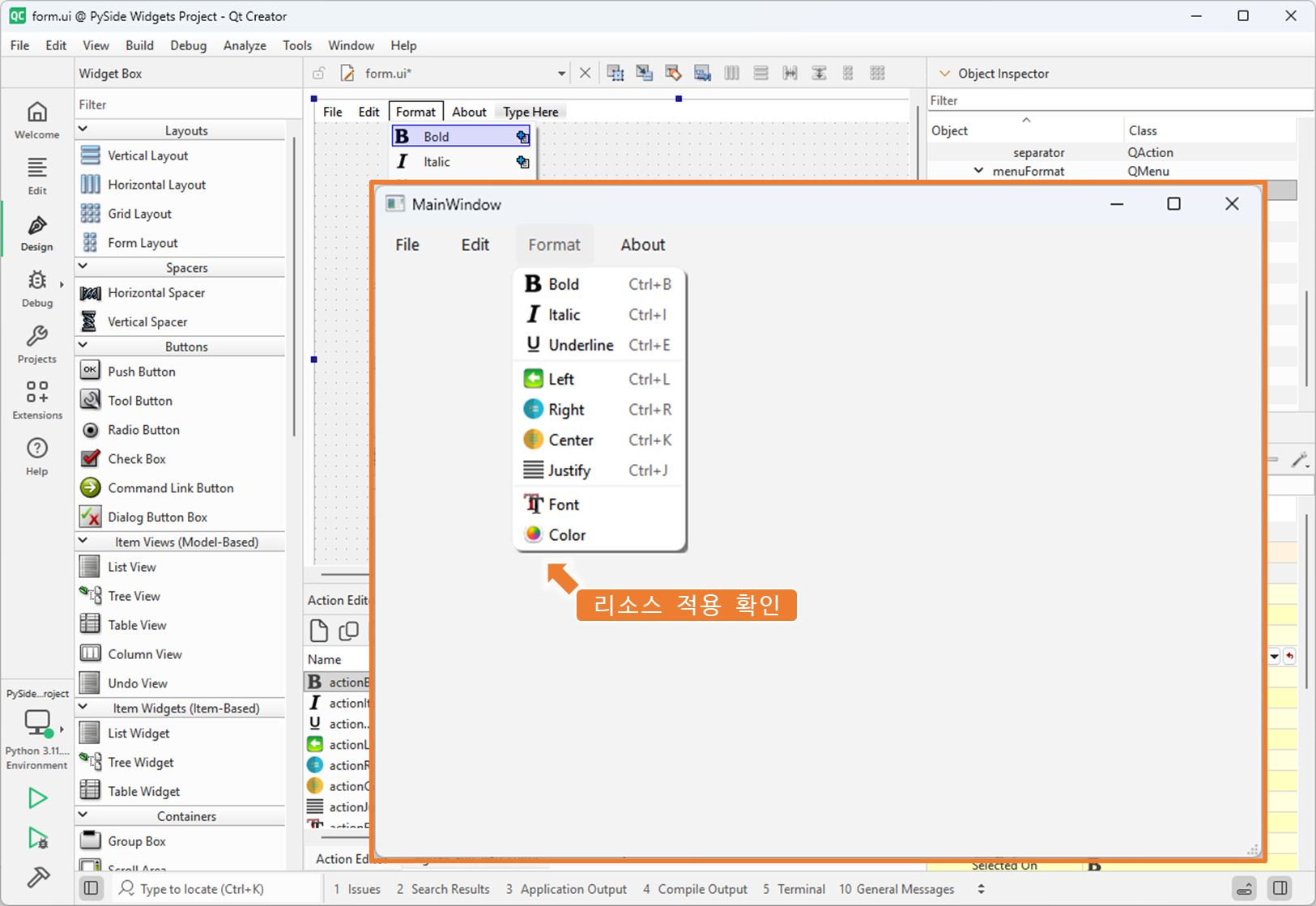 3. Format 메뉴에 리소스 적용