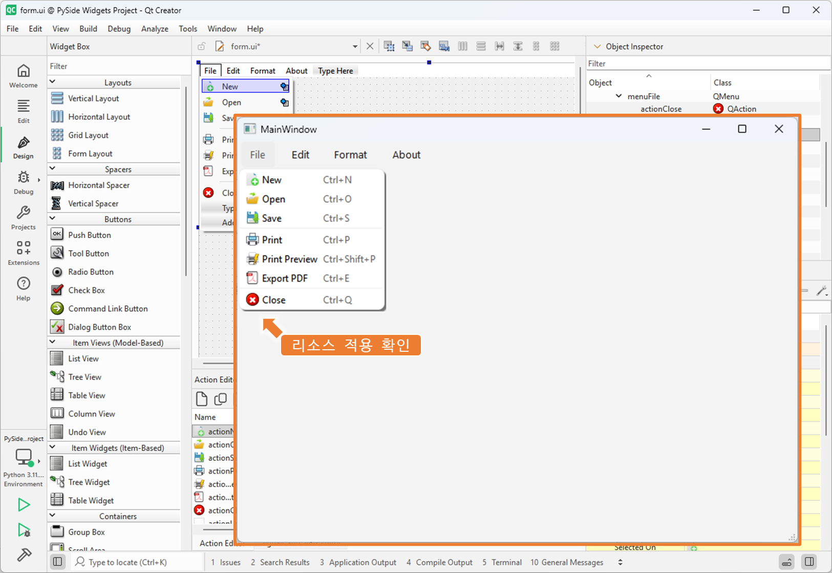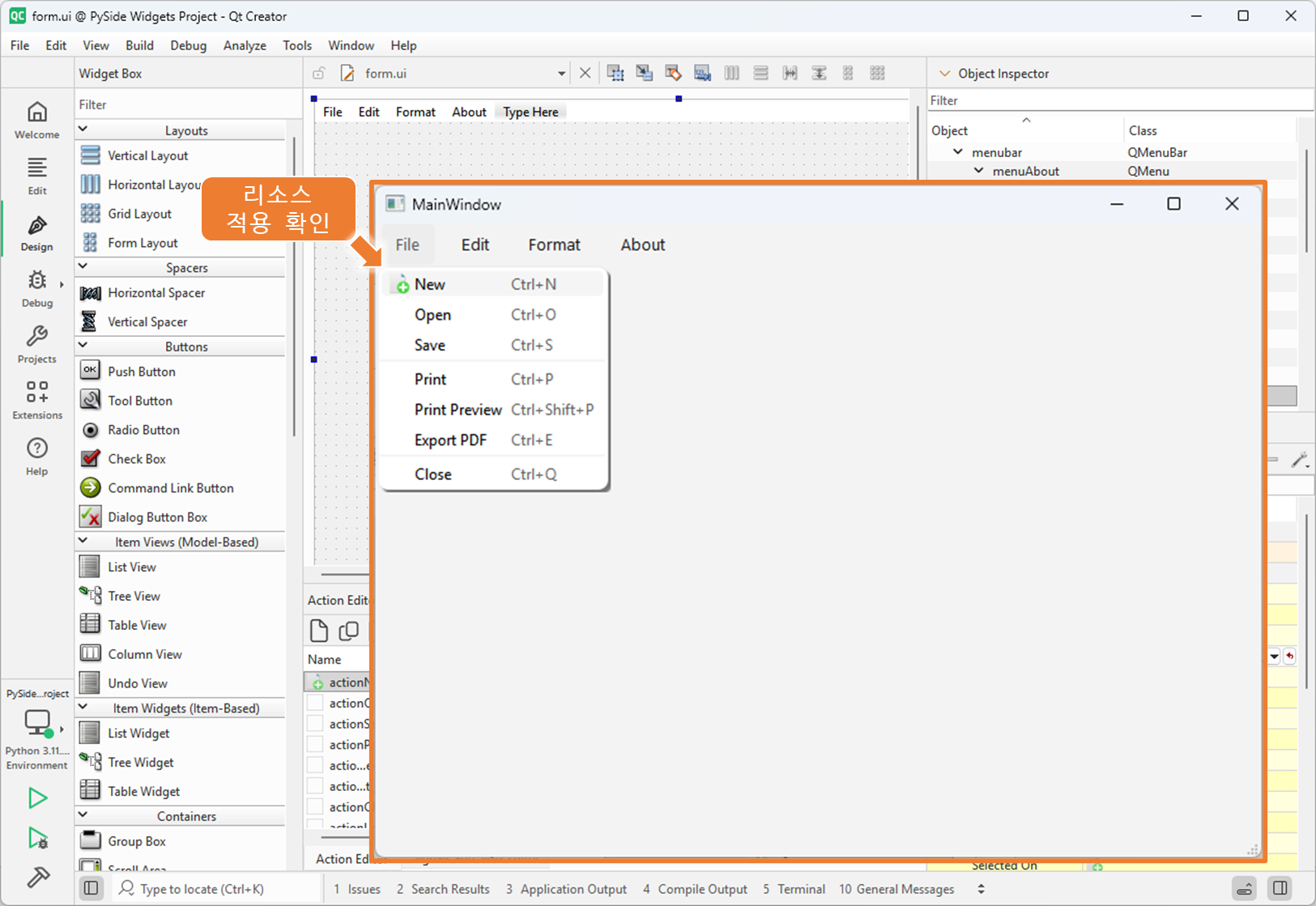2. File 메뉴에 리소스 적용