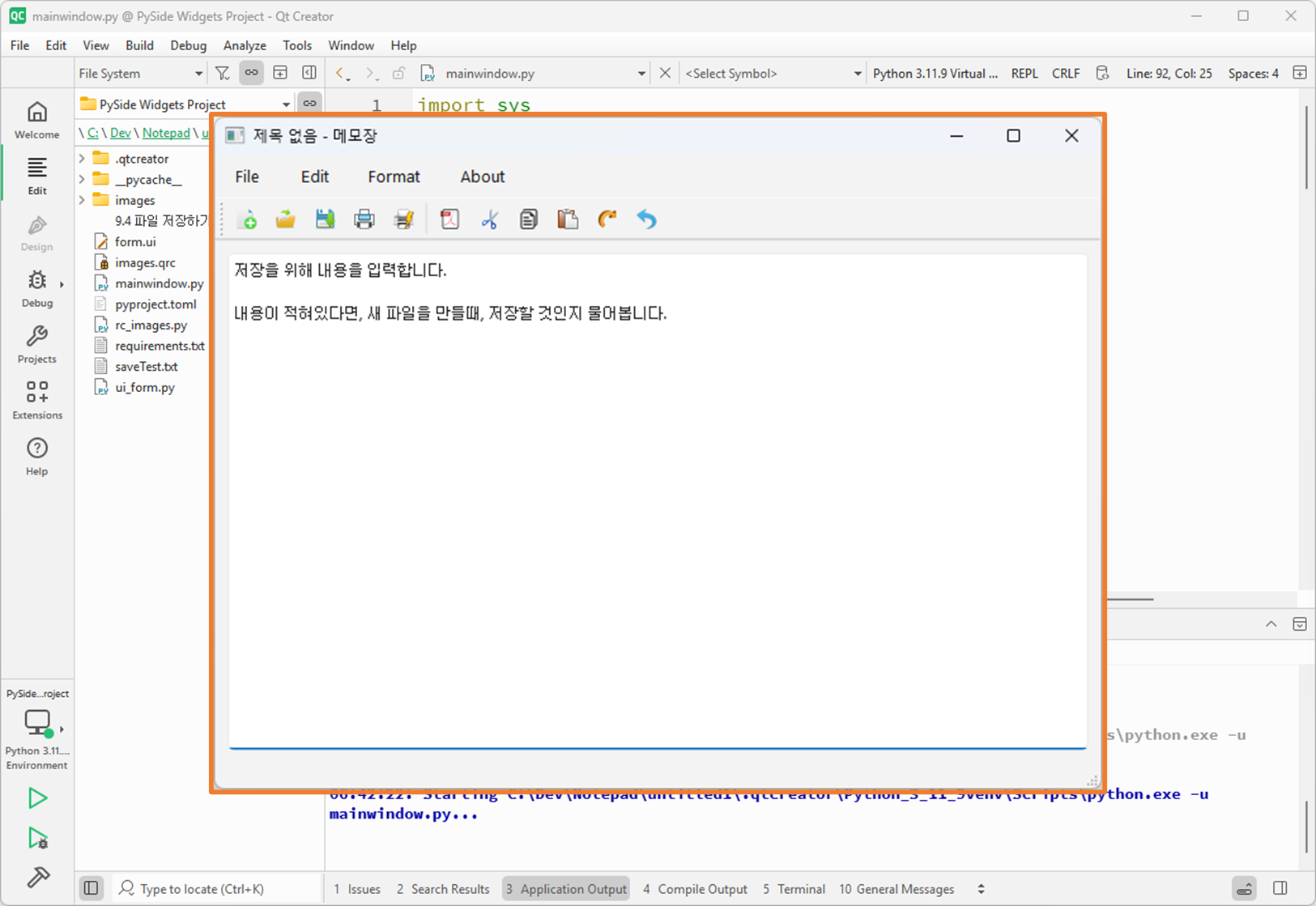 저장 기능은 이전 단계에서 구현한 Qt 스타일 파일 저장 함수와