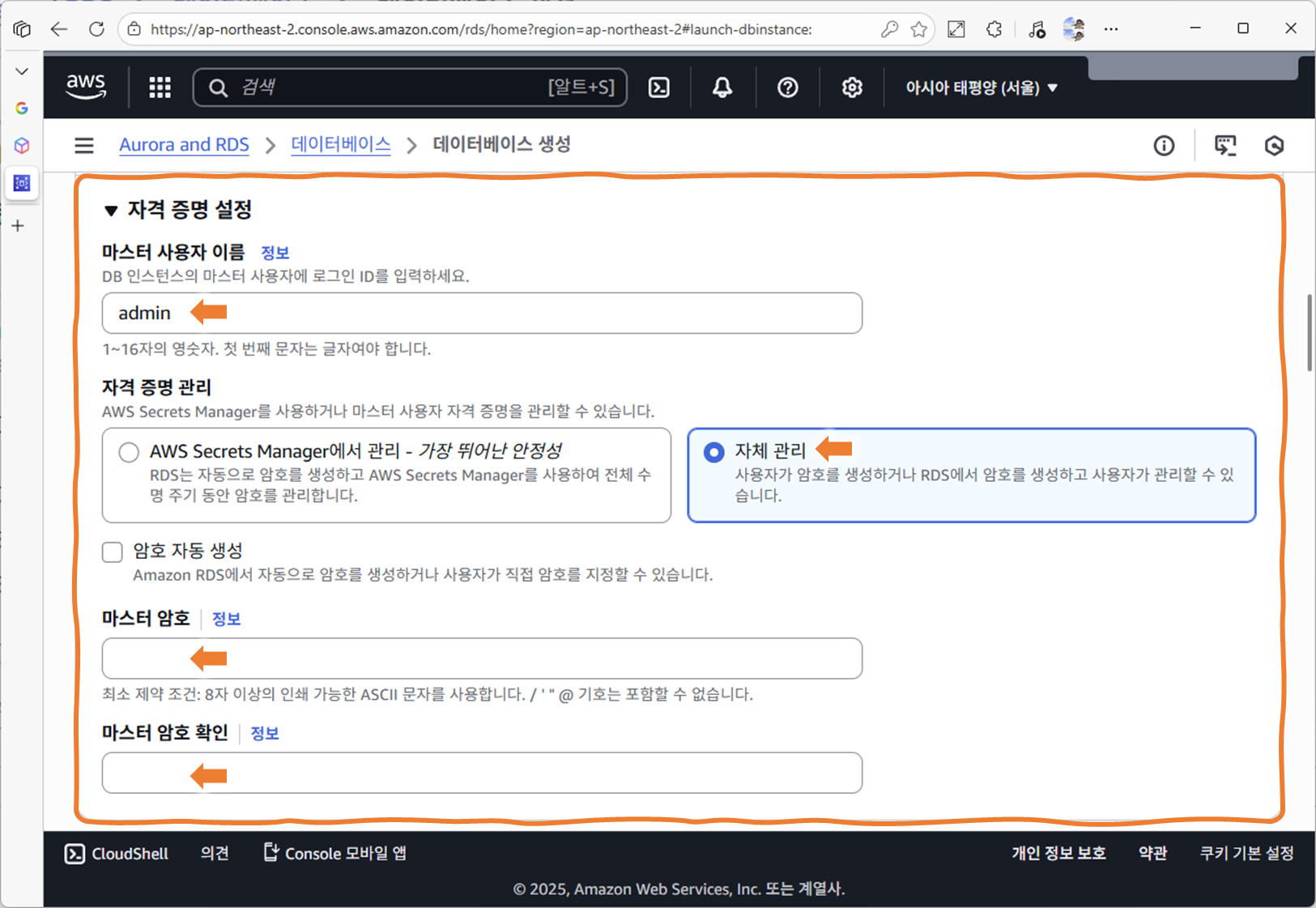 왜냐하면 엔진 버전, 인스턴스 클래스, 스토리지, 퍼블릭 접근 등 세부 항목을 직접 설정하는 연습을 해야 하기 때문입니다.
