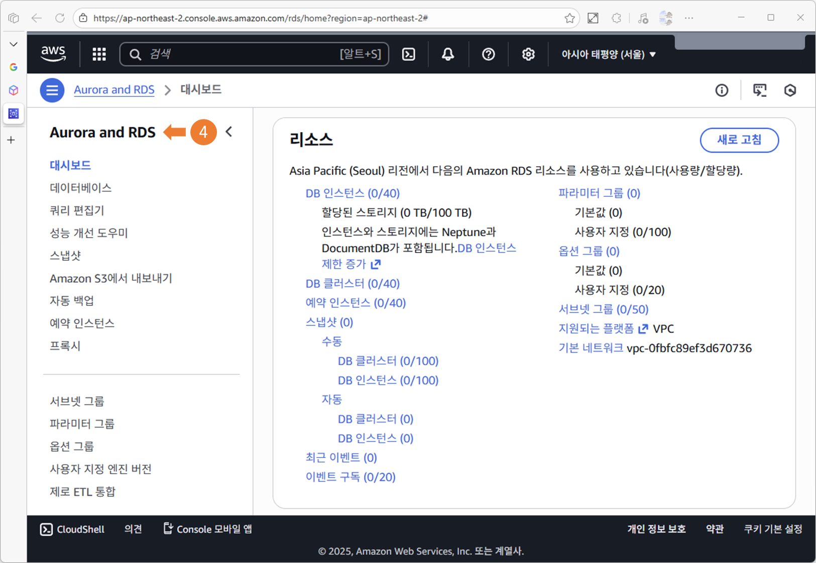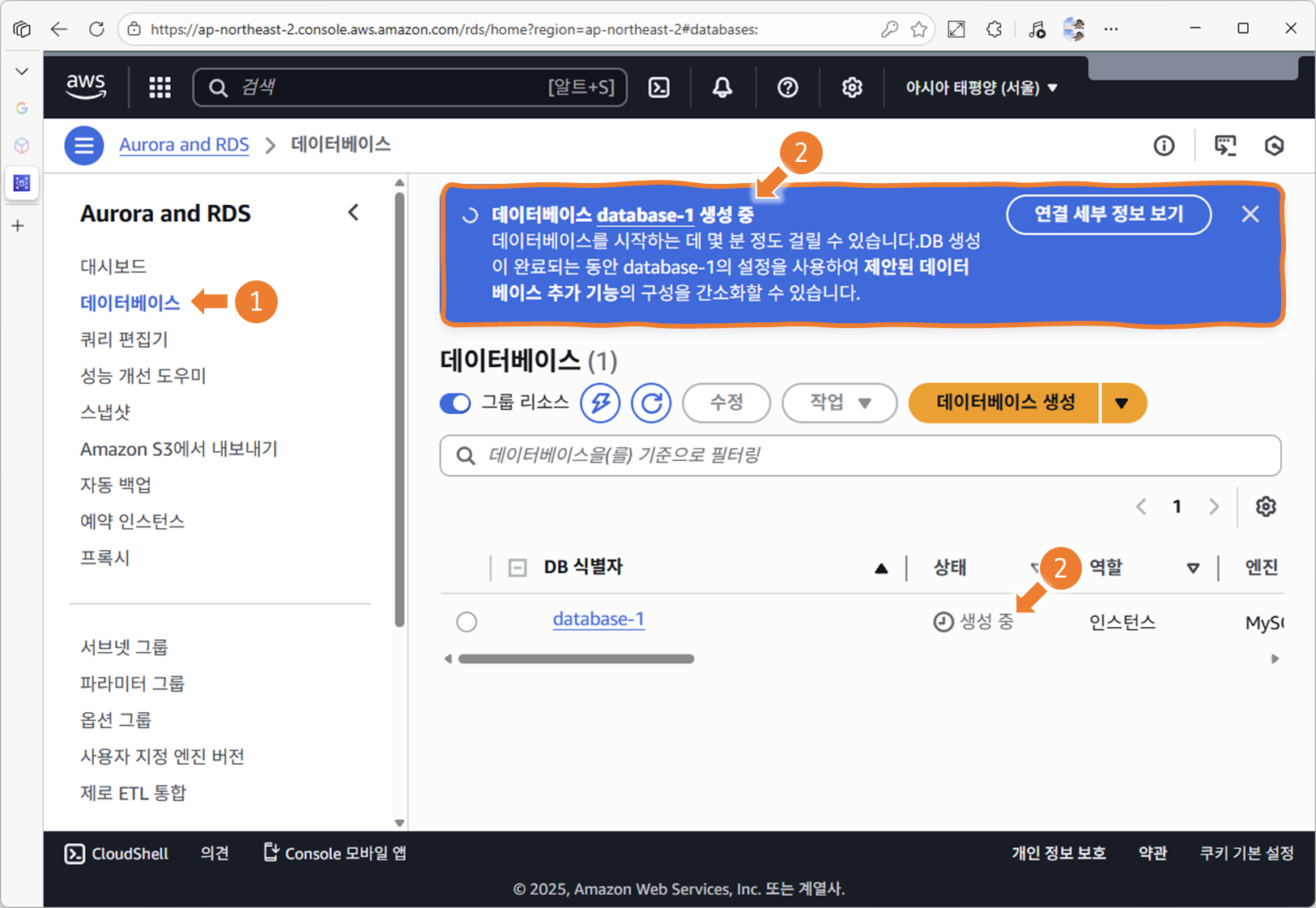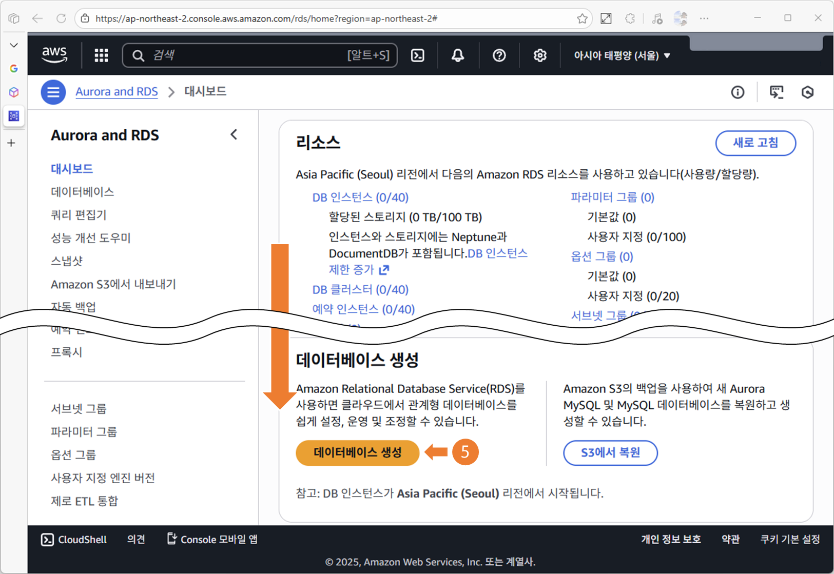 2. RDS 콘솔 접속 및 데이터베이스 생성 진입