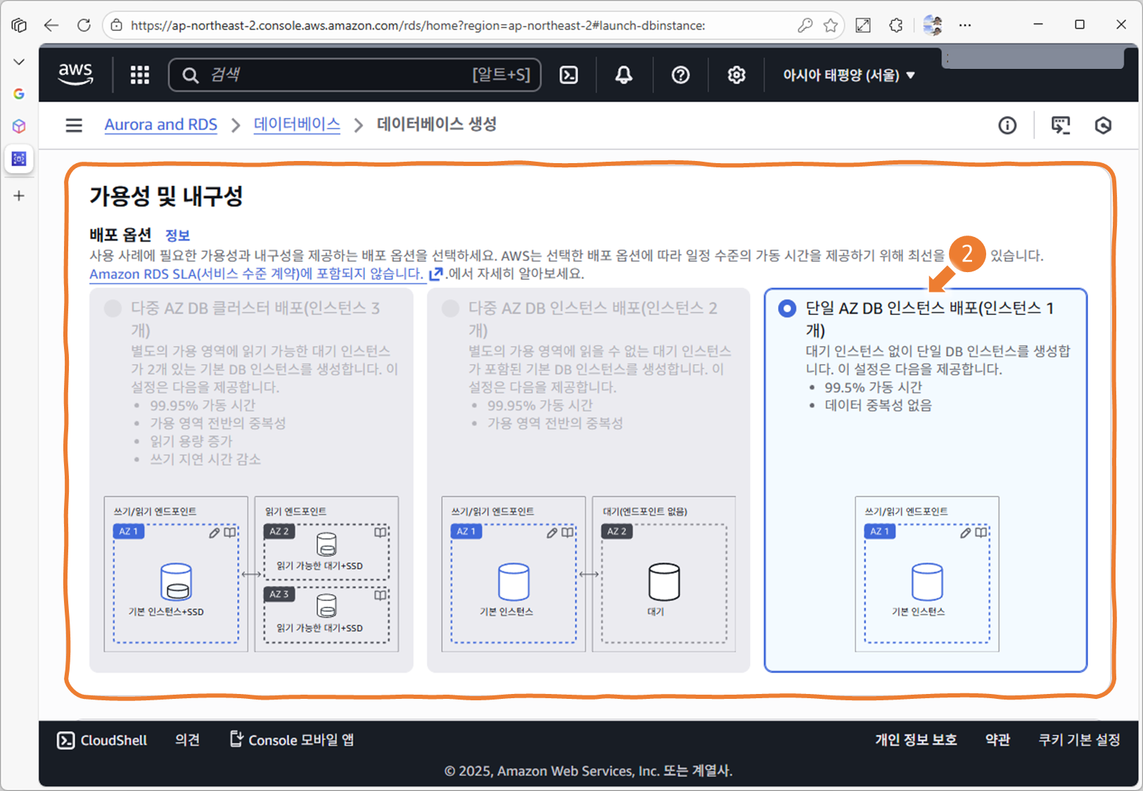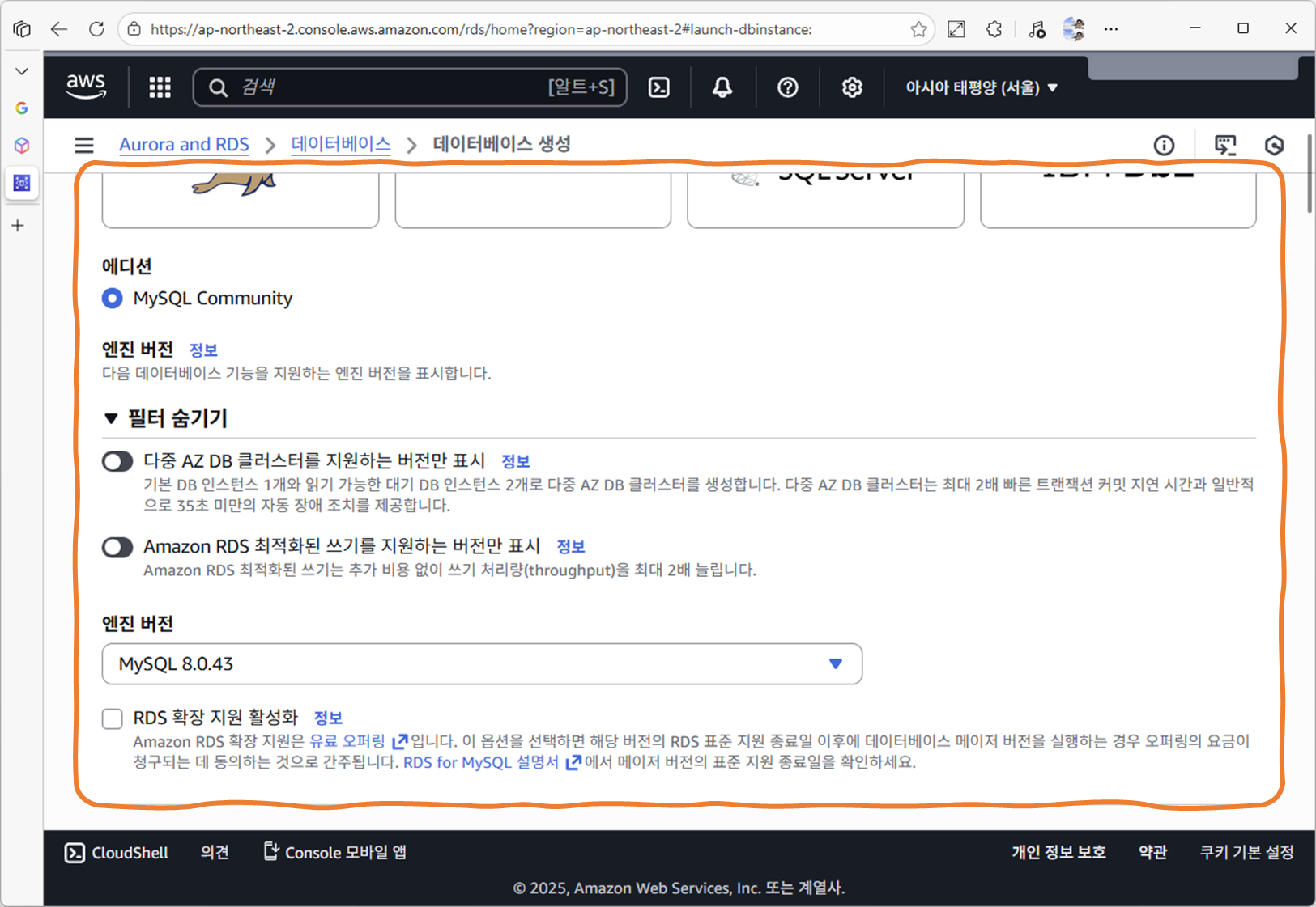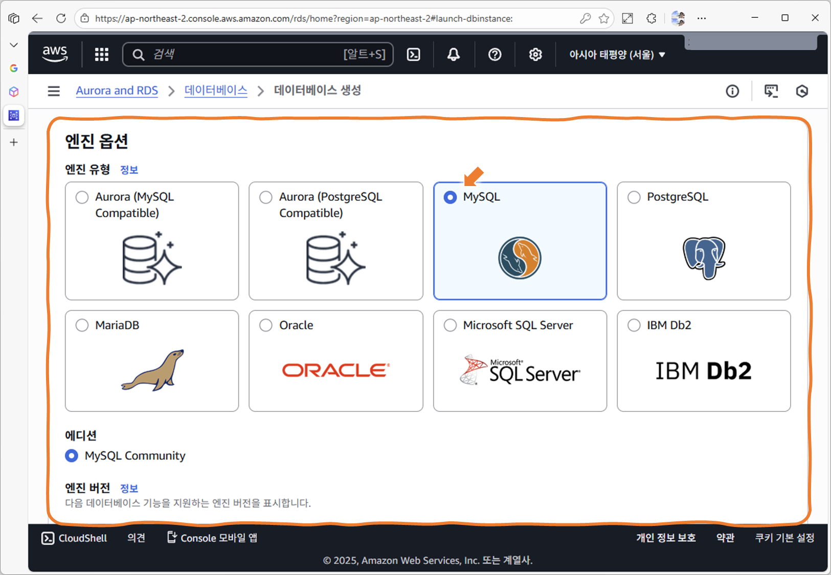 이 단계에서는 AWS 콘솔에서 RDS MySQL 인스턴스를 직접 생성하는 방법을 배웁니다.