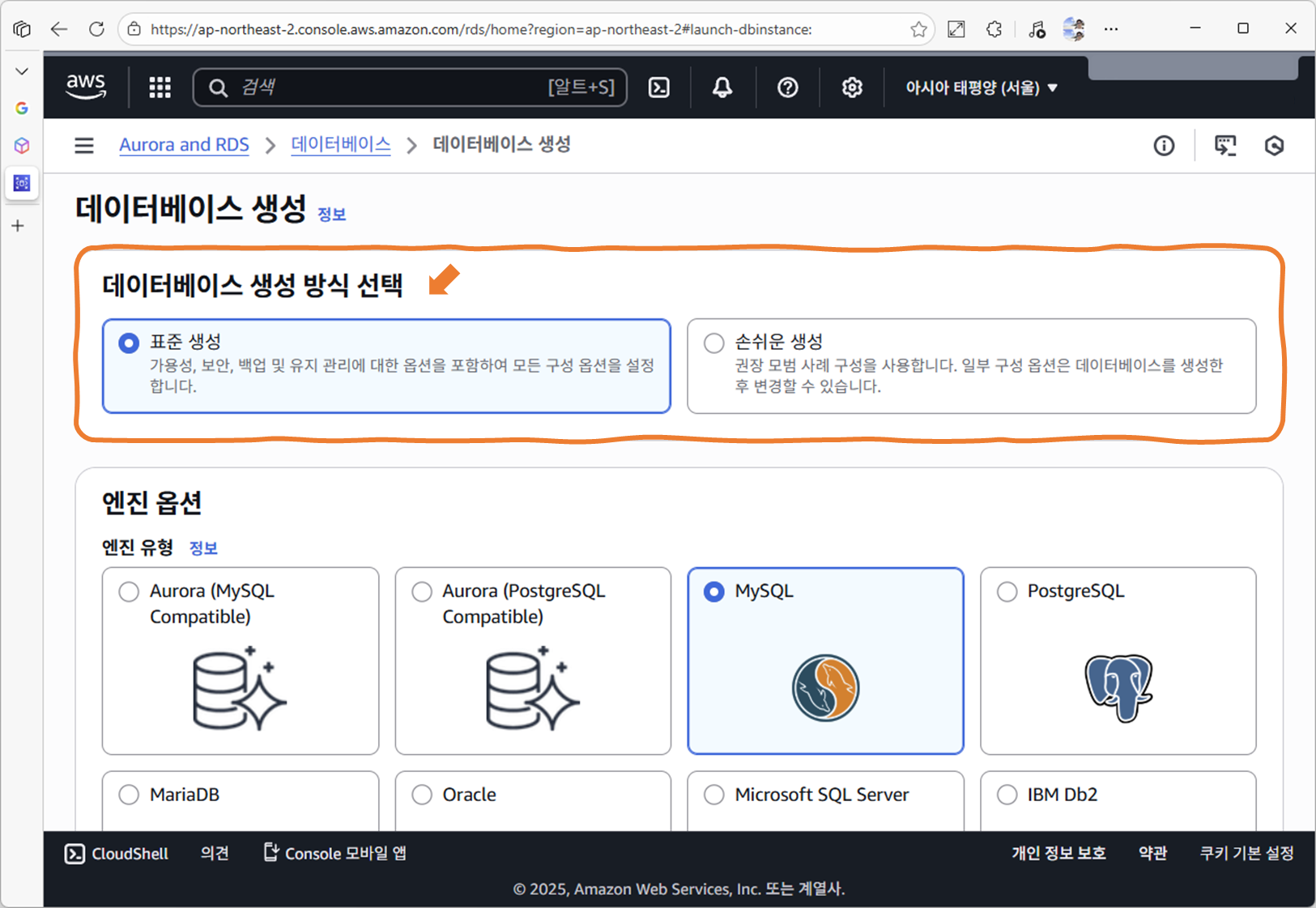 3. [생성 1단계] Database creation method 선택