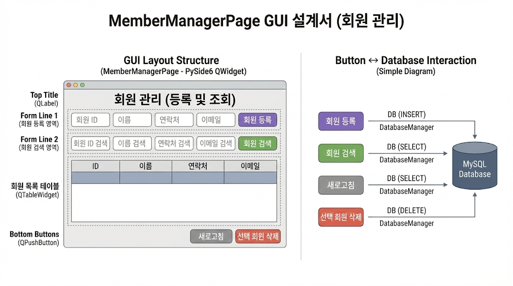 • 회원 등록: 클릭 → INSERT → load_members() → 테이블 갱신