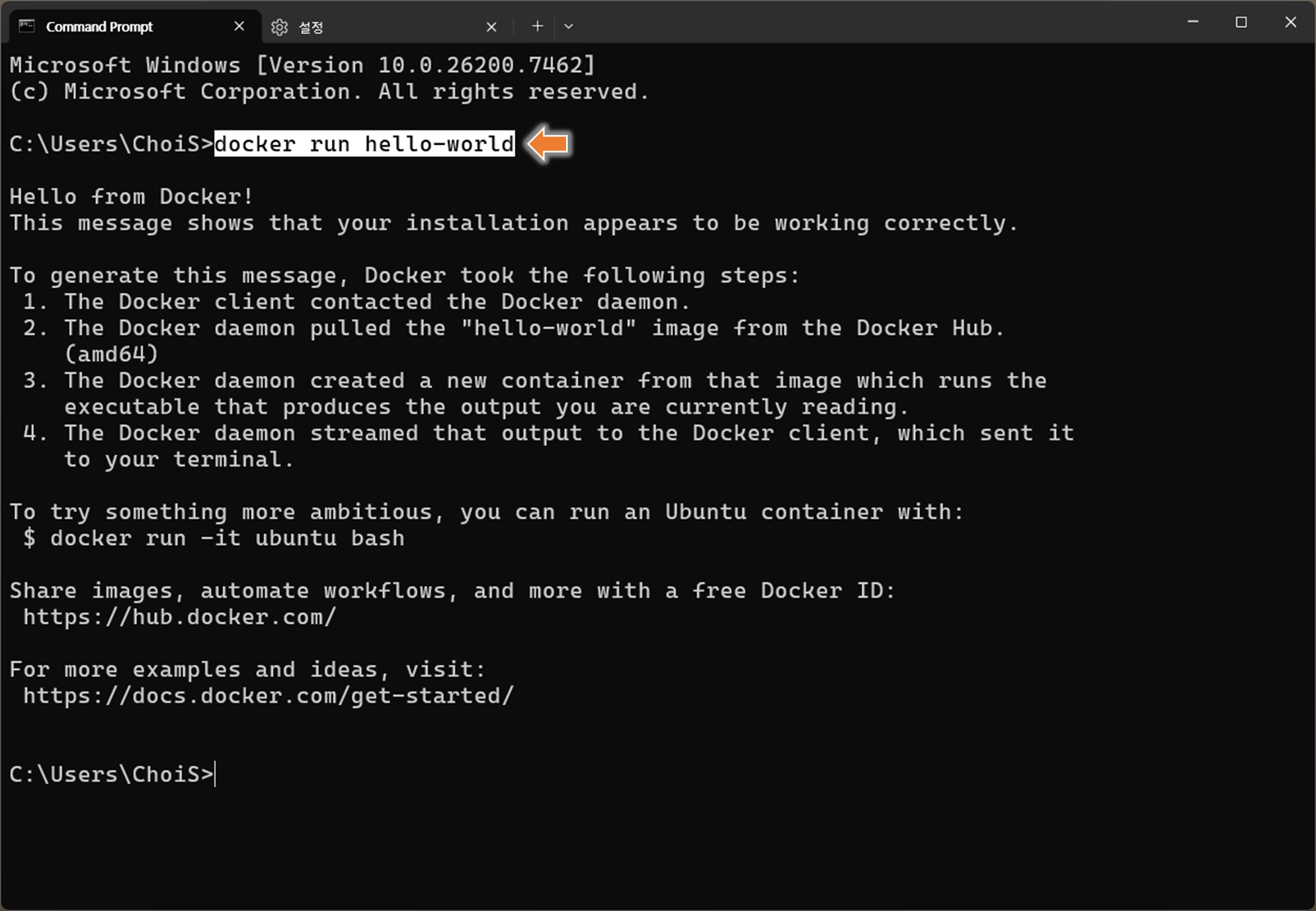 • docker run hello-world 한 줄이 수행하는 모든 과정을 설명할 수 있다
