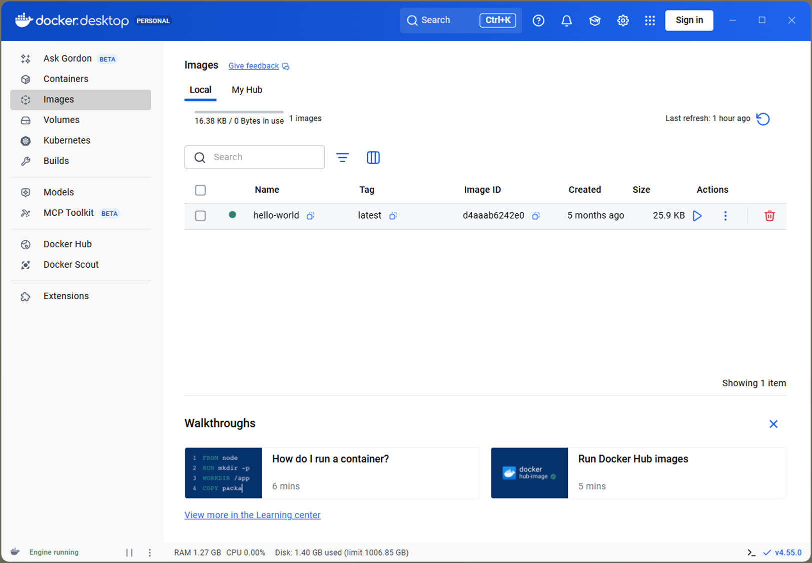 1. 로컬에 hello-world 이미지가 있는지 확인