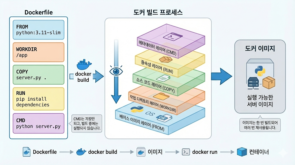 - Dockerfile로 서버 이미지를 빌드할 수 있다