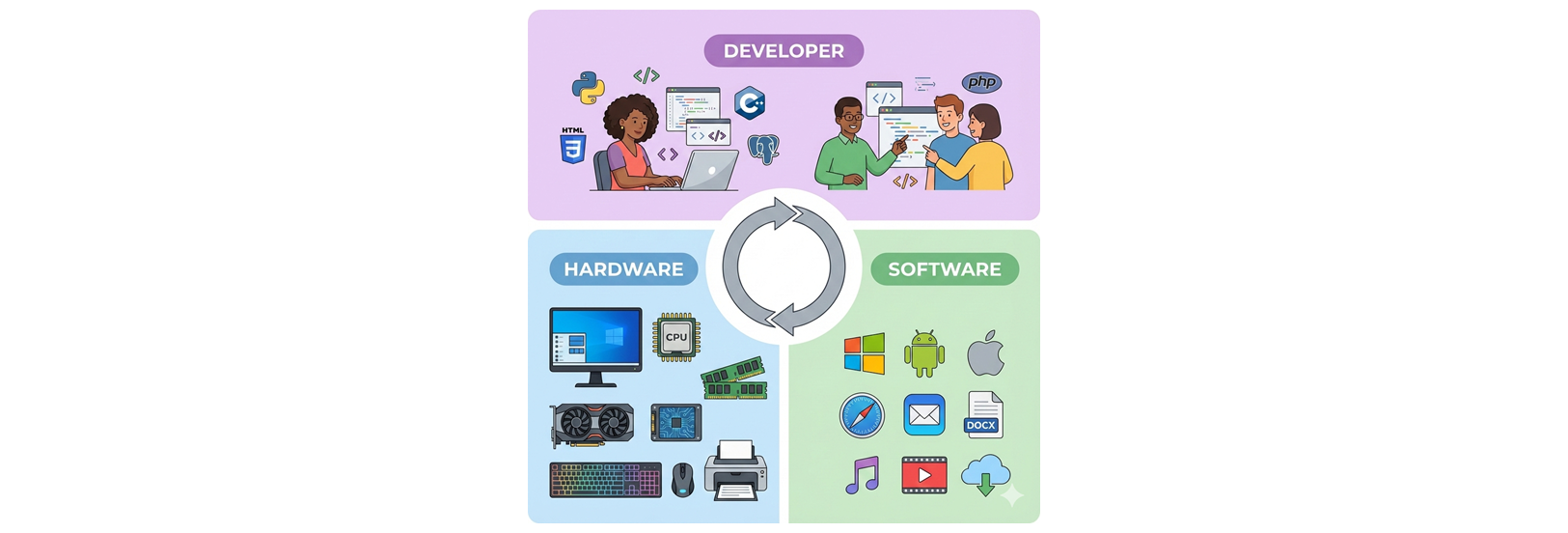 개발자 ↔ 소프트웨어 ↔ 하드웨어