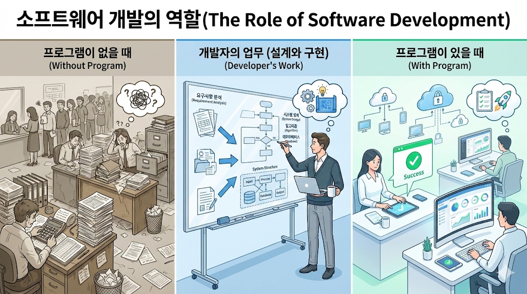 소프트웨어 개발은 '영어 타자 치기(Coding)'로 시작하는 것이 아니라,