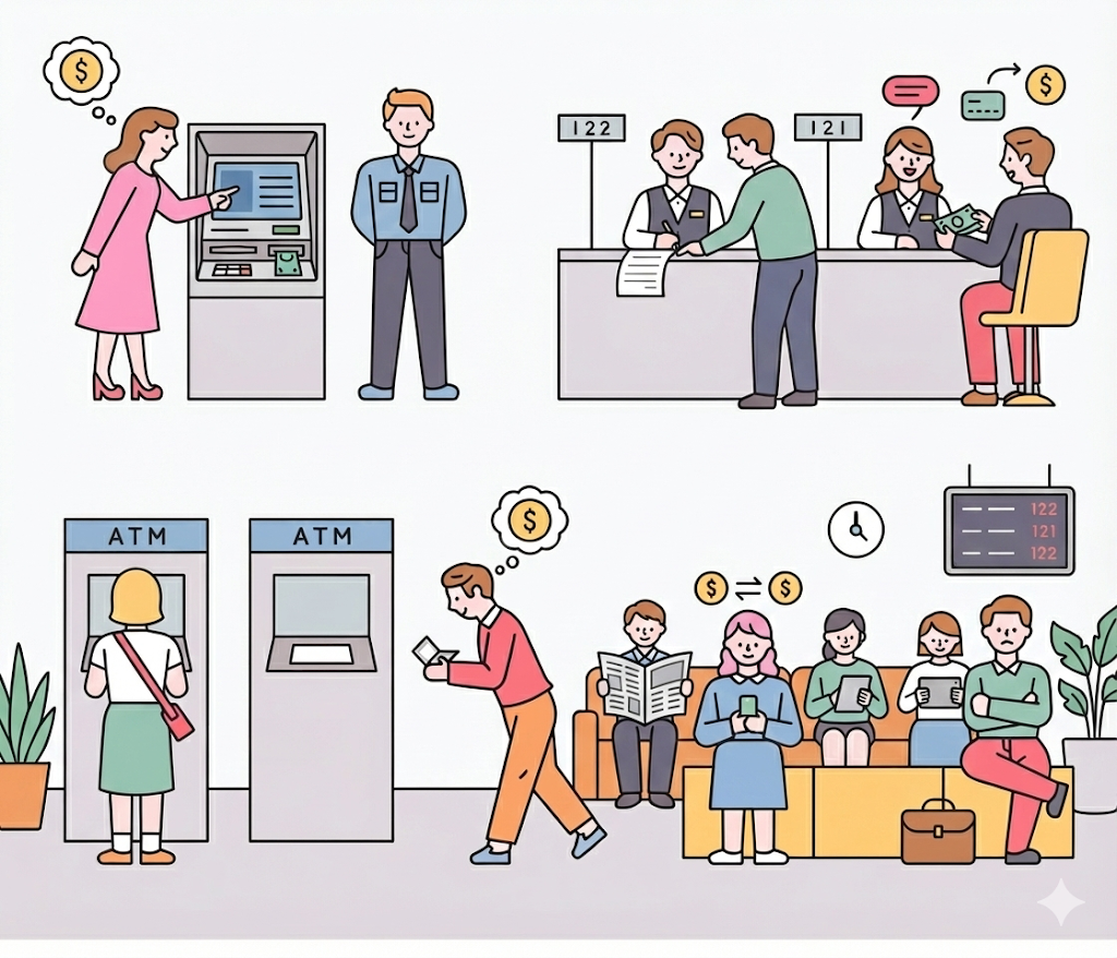 간단한 송금 업무 하나를 처리하기 위해 평일 은행 영업시간(오전 9시~오후 4시)에 맞춰 시간을 내야 합니다.